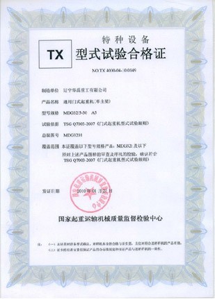 型式试验合格证010